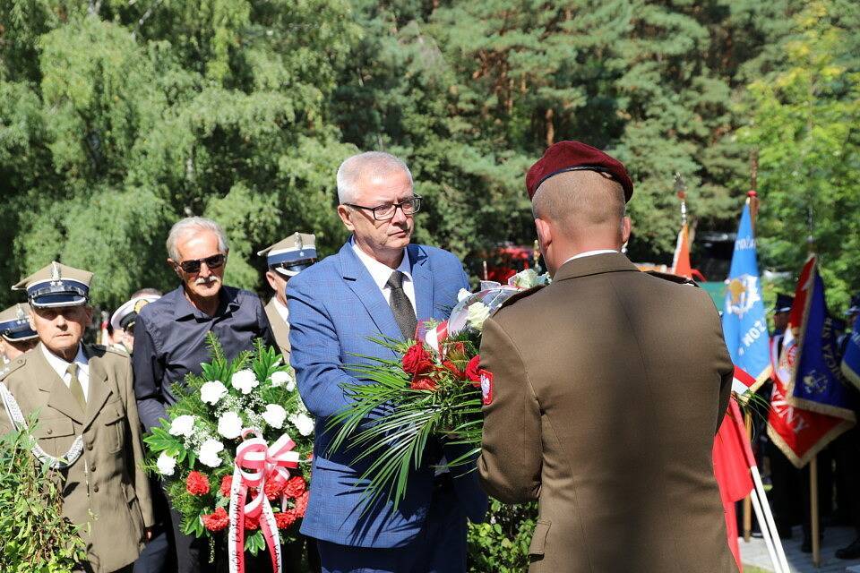 - Mimo bezprawnej agresji i tragicznej sytuacji nie złamano ducha polskości. Polacy bohatersko stanęli do obrony i walki z najeźdźcą. Tak jak w wielu miejscach całego kraju (w Westerplatte, Wieluniu) między innymi również tu, na Górach Borowskich stanął żołnierz polski II Pułku Piechoty Legionów na czele z generałem Ludwikiem Czyżewskim przeciwko miażdżącej przewadze najeźdźcy. Żołnierz wychowany w duchu najwyższych wartości – Bóg, Honor, Ojczyzna! I nie pozwolił sobie wyrwać własnej tożsamości i godności, oddając własne życie i przeciwstawiając się fali barbarzyństwa zalewającej wówczas Europę. Dzisiaj jest to powód do ogromnej chwały i dumy Polaków. W czasie walk wrześniowych II Pułk Piechoty Legionów stracił 663 żołnierzy, w tym 16 oficerów, 67 chorążych i podchorążych oraz 580 szeregowych – przypominał wydarzenia 1939 r. wójt Roman Drozdek. – Demokracja, którą dzisiaj posiadamy, to wielkie dobro okupione krwią i ofiarą bohaterów Września'39. Jednak historia lubi się powtarzać. Dziś z przerażeniem patrzymy na to, co dzieje się za naszą wschodnią granicą, gdzie toczy się wojna. Wydarzenia te muszą uświadomić nam wszystkim, z jakim zagrożeniem militarnym dla Polski mamy dziś do czynienia. Ten fakt powoduje, że inaczej musimy patrzeć na karty historii. (…) Widząc zagrożenia, nie możemy tracić czujności, a przez to umiejętności w rozpoznawaniu zła, nie możemy uciekać się do bezczynności, bo taką postawą nie obronimy tego, co ofiarowali nam żołnierze Września'39, co ofiarowali nam bohaterowie Gór Borowskich. (…) Niech ta dzisiejsza uroczystość 84. Rocznicy wybuchu II wojny światowej będzie dla nas nie tylko kolejną lekcją historii, ale przede wszystkim lekcją mobilizacji i lekcją gotowości kontynuowania walki o wolność i niepodległość, jaką podjęli obrońcy Gór Borowskich. Bowiem, jak uczył nas Józef Piłsudski, niepodległość jest dobrem nie tylko cennym, ale bardzo kosztownym. Trzeba dzisiaj ten koszt ponieść w imię naszych dzieci, w imię naszej przyszłości, dla której to my musimy zagwarantować wolność i niepodległość - mówił wójt Gminy Wola Krzysztoporska, Roman Drozdek.