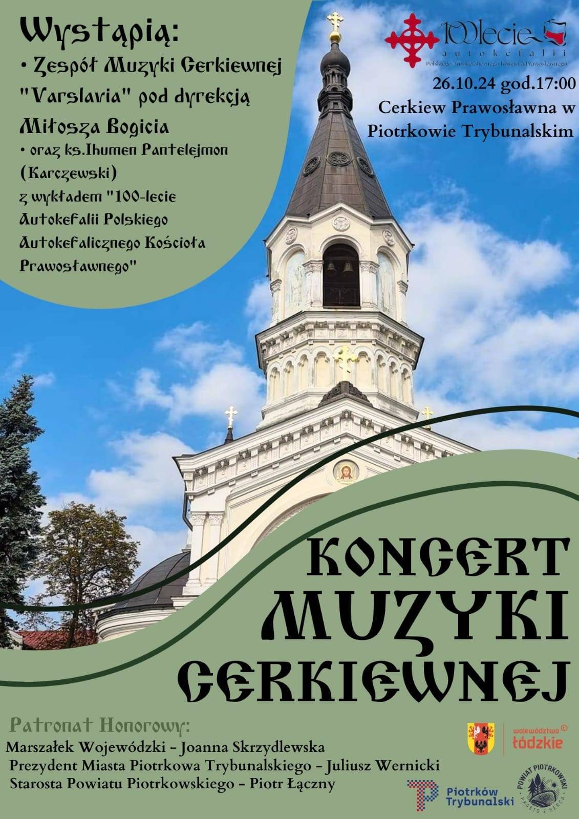 Już 26 października 2024 roku o godzinie 17:00 w Cerkwi Prawosławnej w Piotrkowie Trybunalskim odbędzie się wyjątkowy Koncert Muzyki Cerkiewnej, zorganizowany z okazji obchodów 100-lecia Autokefalii Polskiego Autokefalicznego Kościoła Prawosławnego.