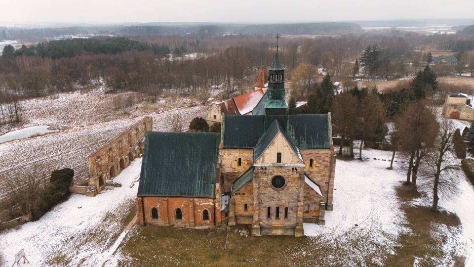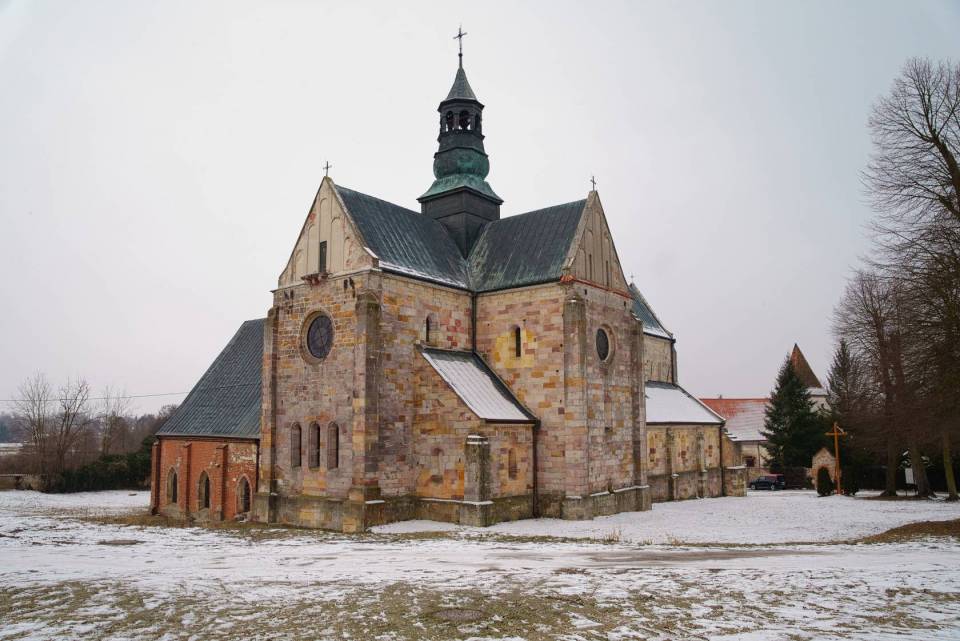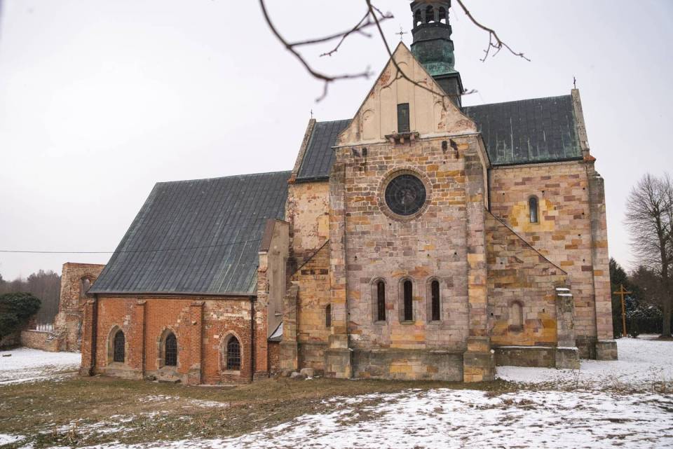 Centralnym elementem kompleksu jest kościół św. Tomasza Kantuaryjskiego, wzniesiony w stylu romańskim. Świątynia, wybudowana przed 1232 r. ma formę trójnawowej bazyliki z transeptem, co jest typowe dla cysterskiej architektury sakralnej. Surowe i skromne wnętrze kościoła znakomicie uzupełniają nowożytne marmurowe i alabastrowe ołtarze, prospekt organowy, ambona i stalle. Kościół charakteryzuje się masywną bryłą, surową dekoracją oraz harmonijnymi proporcjami, co odzwierciedla ideały prostoty i funkcjonalności zakonu cysterskiego.