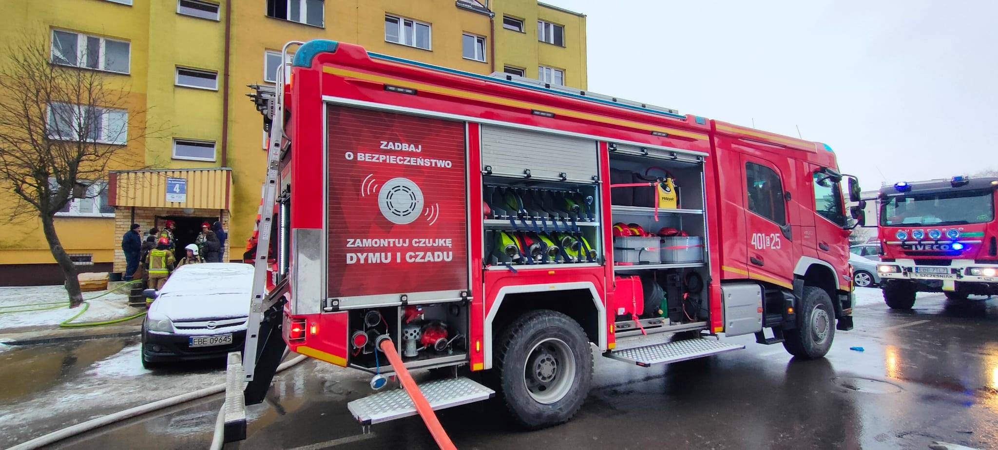 W momencie przyjazdu pierwszych zastępów większość mieszkańców bloku była już poza budynkiem.