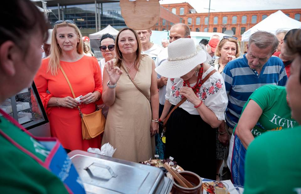 Wśród wystawców było wiele KGW oraz producentów regionalnej, tradycyjnej żywności. Ich stoiska kusiły pierogami z różnorodnym farszem, żurkiem na prawdziwym zakwasie, rzemieślniczymi serami czy domowymi przetworami. Smaki i aromaty przyciągały gości jarmarku a produkty oraz potrawy błyskawicznie znikały. - Wystawialiśmy się dzisiaj ze świeżonką, bigosem i pierogami z mięsem i kapustą, mamy też duży wybór ciast. Jest bardzo duże zainteresowanie, bardzo dużo chętnych, świeżonka już się skończyła – przyznał ok. godz. 16 Norbert Dudek z KGW Pod Lipami z Koła w pow. piotrkowskim. Gospodynie z KGW Chorki z pow. łęczyckiego do Łodzi przyjechały z prażokami, karkówką w sosie i żurkiem chorkowskim. Jak zdradziła Dorota Suchocz z koła, zupa jest robiona według bardzo starego przepisu przekazywanego z pokolenia na pokolenie. – Podstawą jest zakwas chorkowski z mąki żytniej z dodatkiem skórki chleba, kisi się go 7 dni – mówi.