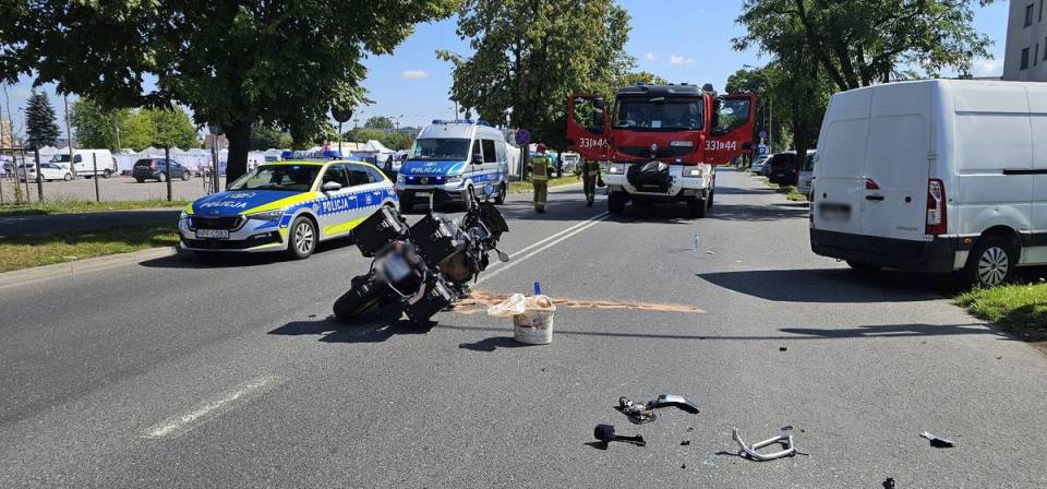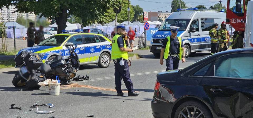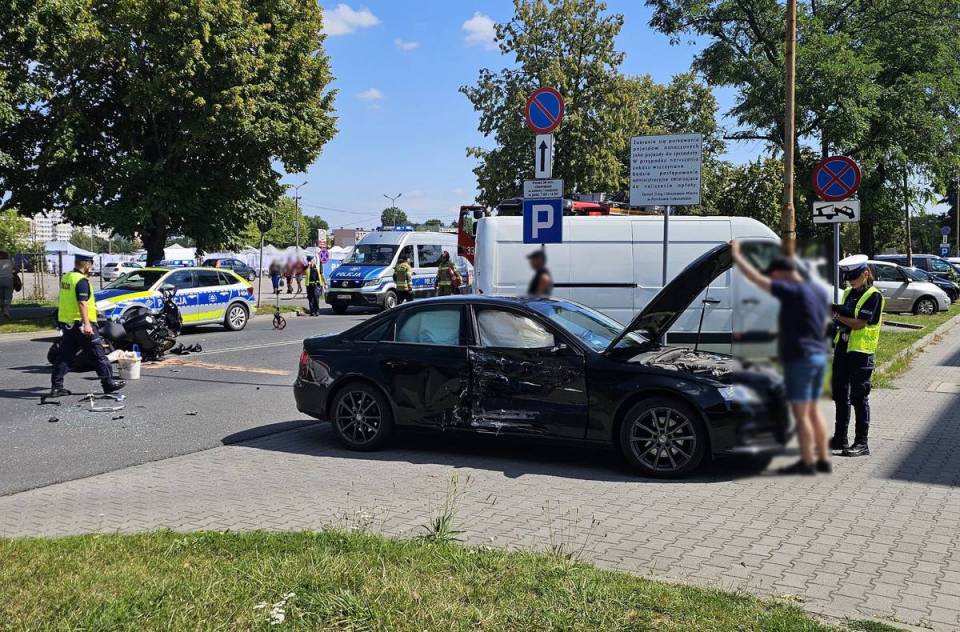 W piątek, 9 sierpnia przed godziną 11:00 do dyżurnego piotrkowskiej jednostki wpłynęło zgłoszenie, że na ulicy Dmowskiego w Piotrkowie Trybunalskim doszło do zdarzenia drogowego z udziałem motocyklisty i kierującego pojazdem osobowym. Na miejsce od razu skierowane zostały dwa patrole.